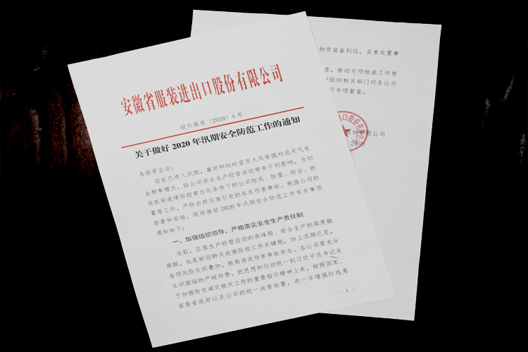 為深入開展安全隱患排查,鞏固安全生產(chǎn)成果,結(jié)合當(dāng)前疫情防控政策要求,公司于端午節(jié)前后,赴各部室、投資企業(yè)開展安全生產(chǎn)檢查活動(dòng)。6月24日,公司黨委副書記、副總經(jīng)理羅平安率隊(duì),到各部室開展安全防疫大檢查,仔細(xì)檢查各部室日常的消毒通風(fēng)、衛(wèi)生安全等情況,并針對(duì)檢查發(fā)現(xiàn)的各類問題,要求立即整改、不留死角。6月29日,公司紀(jì)委書記琚云根率隊(duì)赴子公司望江鑫茂制衣公司開展安全生產(chǎn)檢查,檢查現(xiàn)場(chǎng)琚云根書記傳達(dá)了公司安全生產(chǎn)方面指示和要求,布置了下一步安全生產(chǎn)工作重點(diǎn),并與鑫茂制衣現(xiàn)場(chǎng)負(fù)責(zé)人簽訂了2020年度《安全生產(chǎn)責(zé)任書》。
