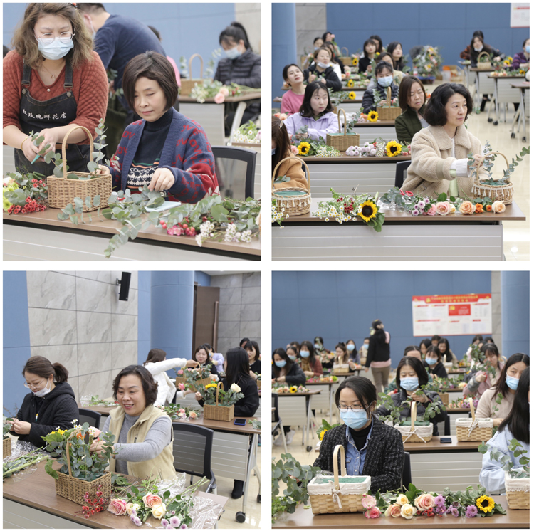 隨后,在花藝?yán)蠋煹南ば闹笇?dǎo)下,女職工們通過自己靈巧的雙手,學(xué)動作、剪枝芽、插花籃,自由發(fā)揮進(jìn)行創(chuàng)意制作。活動現(xiàn)場彌漫著濃郁的鮮花香味,洋溢著陣陣歡聲笑語,大家體驗(yàn)著動手制作的樂趣,創(chuàng)作了一個個精品的花藝手工作品,紛紛手捧花籃,留下美麗的瞬間,分享著溫馨甜蜜的時光。