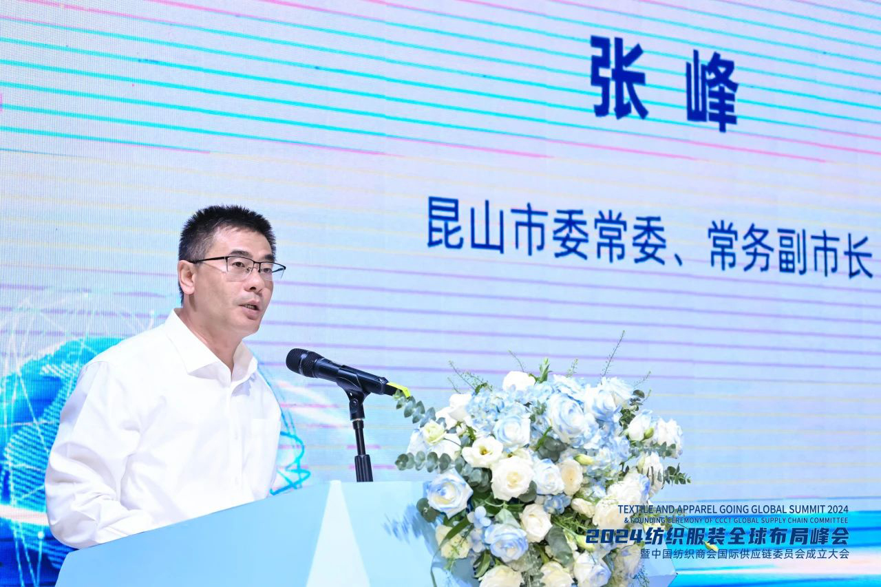 在中國紡織品進(jìn)出口商會(huì)國際供應(yīng)鏈委員會(huì)成立大會(huì)上,商務(wù)部外貿(mào)司二級(jí)巡視員趙虹、昆山市委常委、常務(wù)副市長張峰分別致辭。