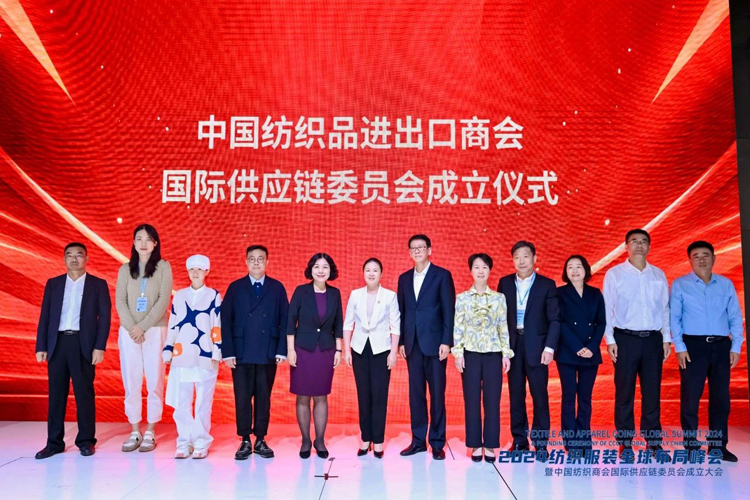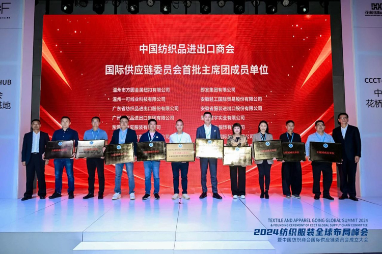 為積極應(yīng)對(duì)國際供應(yīng)鏈格局重構(gòu),轉(zhuǎn)型升級(jí)本土供應(yīng)鏈,開拓整合海外供應(yīng)鏈,中國紡織品進(jìn)出口商會(huì)在本次活動(dòng)上正式成立國際供應(yīng)鏈委員會(huì)。在成立儀式上,張錫安為國際供應(yīng)鏈委員會(huì)首任輪值主席、晨風(fēng)集團(tuán)創(chuàng)始人尹國新授牌。張錫安和尹國新共同為國際供應(yīng)鏈委員會(huì)特邀專家顧問頒發(fā)聘書,并為國際供應(yīng)鏈委員會(huì)創(chuàng)始成員單位授牌。國際供應(yīng)鏈委員會(huì)秘書處和執(zhí)行秘書處工作團(tuán)隊(duì)也在會(huì)上正式亮相。