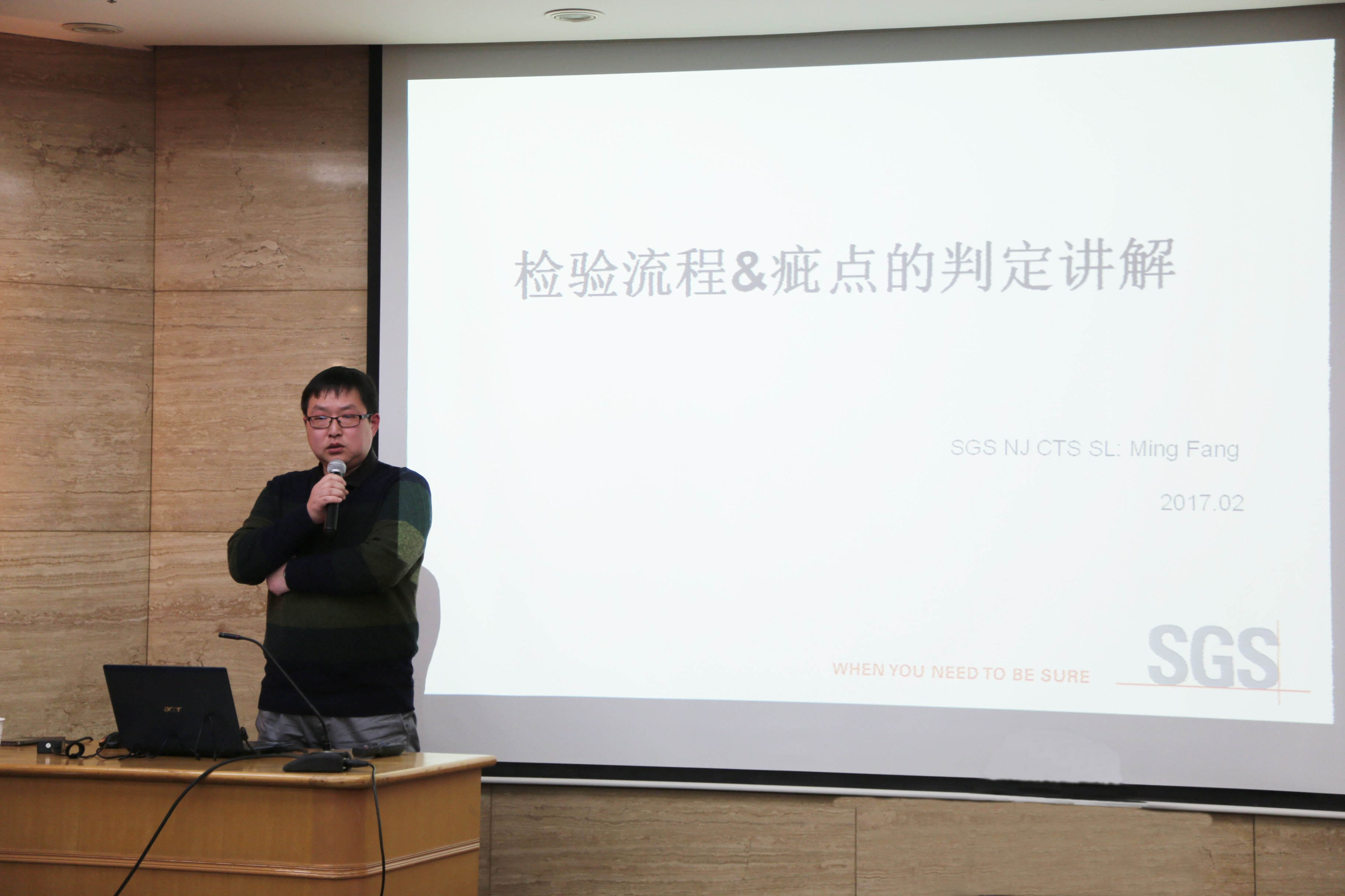 下午的課程培訓(xùn)由外聘的SGS專(zhuān)家房明作主講。SGS是全球領(lǐng)先的檢驗(yàn)、鑒定、測(cè)試和認(rèn)證機(jī)構(gòu),此次受邀來(lái)給公司員工做培訓(xùn),房老師就檢驗(yàn)流程和疵點(diǎn)的判定兩個(gè)方面做詳細(xì)的講解,并現(xiàn)場(chǎng)與員工互動(dòng),幫助他們解答疑惑,給公司員工提供了更加專(zhuān)業(yè)的訓(xùn)練和學(xué)習(xí)機(jī)會(huì)。