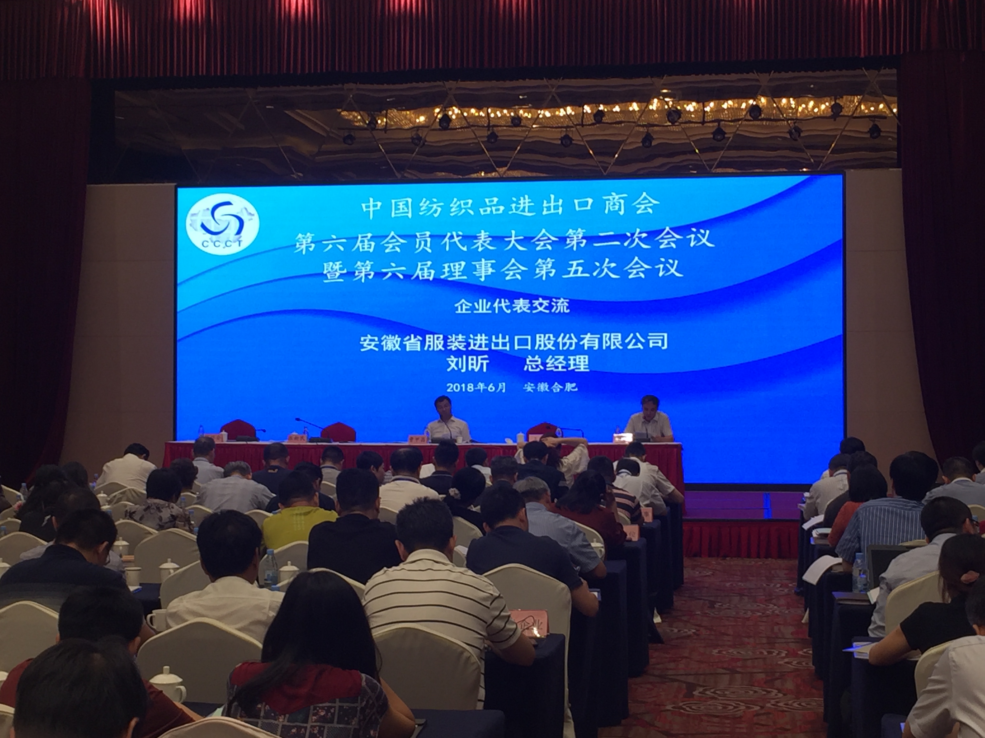 6月28日,中國(guó)紡織品進(jìn)出口商會(huì)第六屆會(huì)員代表大會(huì)第二次會(huì)議暨第六屆理事會(huì)第五次會(huì)議在合肥順利召開(kāi)。中國(guó)紡織品進(jìn)出口商會(huì)兼職副會(huì)長(zhǎng)、公司總經(jīng)理劉昕參加了會(huì)議,并作為企業(yè)代表上臺(tái)交流發(fā)言。