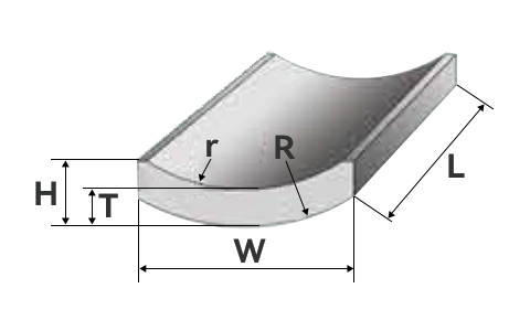 濕壓磁瓦外徑RR(-0.5 ~ +1)mm± 0.1mm