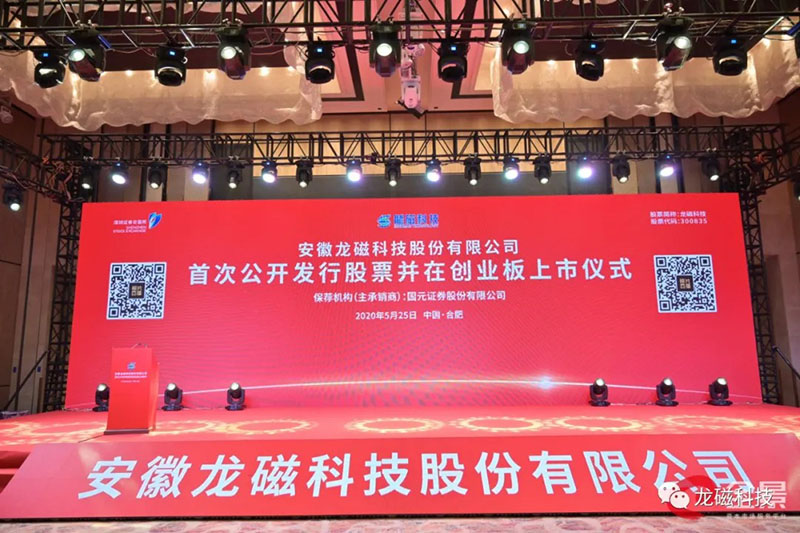 2020年5月25日,龍磁科技在安徽合肥舉行了首次公開發(fā)行股票并在創(chuàng)業(yè)板上市儀式,并通過深交所云上直播廳進(jìn)行了線上直播。